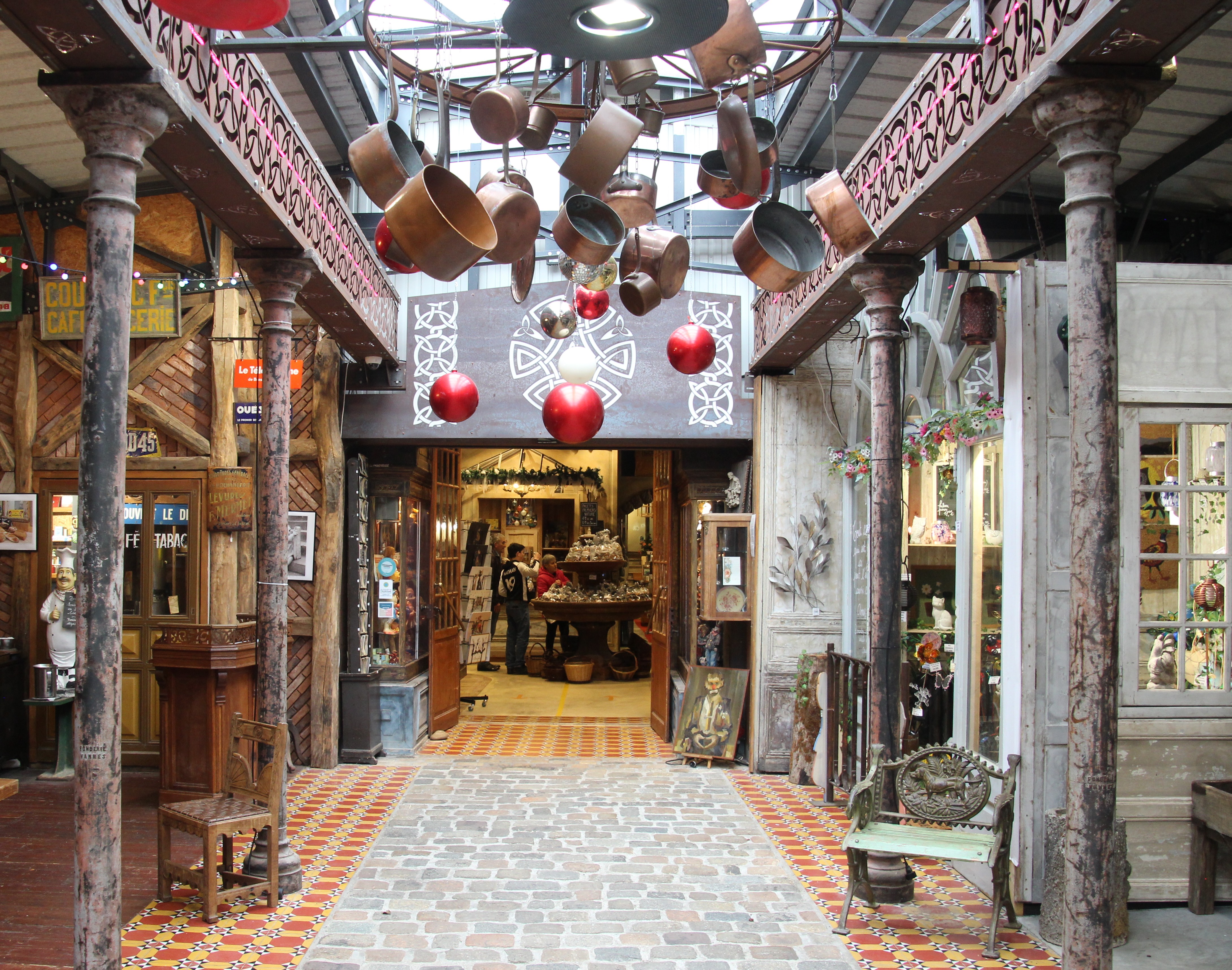 Reconstitution d’une place de village des années 1930 à 1960 avec ses commerces : le café de la gare, l’épicerie, le fournil, l’atelier couture et mode, le salon de coiffure, l’atelier du cordonnier…